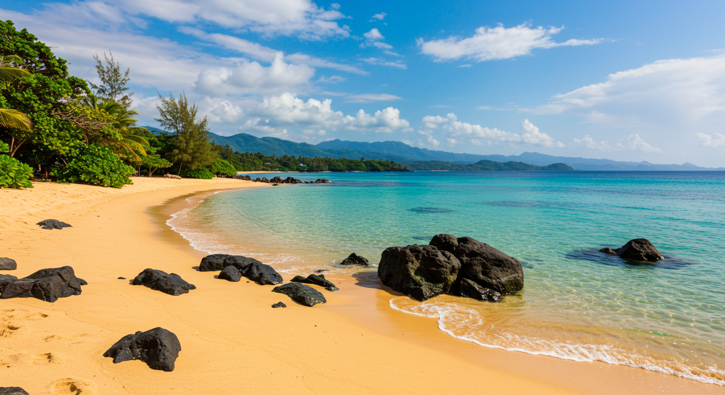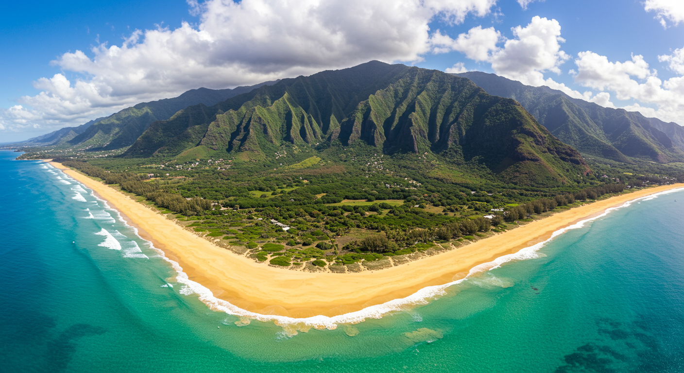 Haena Beach boasts breathtaking views of Mount Makana in the distance and features a wide, white-sand beach perfect for evening strolls and beachcombing.